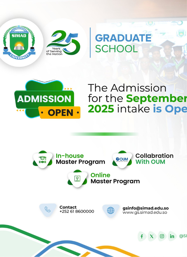 SIMAD Graduate School transforms ambition into achievement through world-class education, research, and real-world learning, empowering leaders to create lasting impact in Somalia and globally.